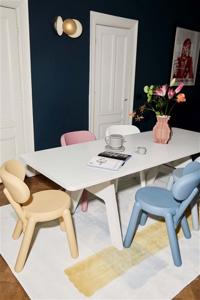 Kaboom staat vrolijk in het leven, maar neemt zitten bloedserieus. Comfort staat voorop. Op een Kaboom zit je met gemak een hele avond te eten, te borrelen of bij te praten. Elke designstoel wordt met zorg rotatiegegoten in Nederland, in kleine oplages. Met elke Kaboom haal je dus een ambachtelijk product in huis. Als hij uit de mal komt, laat hij horen dat hij er is: kaboom!Kaboom staat er. Rond, vriendelijk en vol karakter. Alsof -ie is weggewandeld uit je favoriete stripverhaal. Dankzij z’n ronde vormen is deze designstoel aaibaar, maar ook ijzersterk. Kabooms stevige postuur heeft namelijk een functie. Het uitgekiende ontwerp is rotatiegegoten. Hoe dikker de holle vormen, hoe steviger de stoel. Dat maakt Kaboom onverwoestbaar.