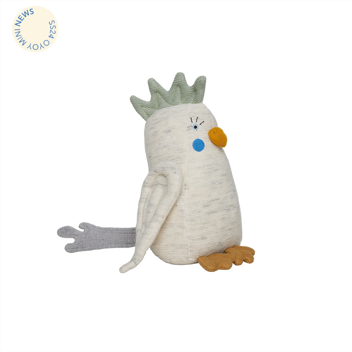 Meet Kai the Parakeet, a cheerful member of the Birds of OYOY family. Made from soft cotton, Kai is not just a toy, he is ready to cuddle and become your little one's new best friend. Style number M107530. Quality: 100% cotton, 100% recycled polyester filling. Dimensions: H31 x L31 x W16 cm. Available in Offwhite / Light Mint.
