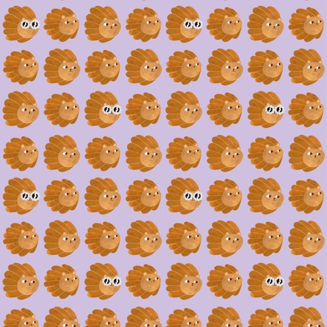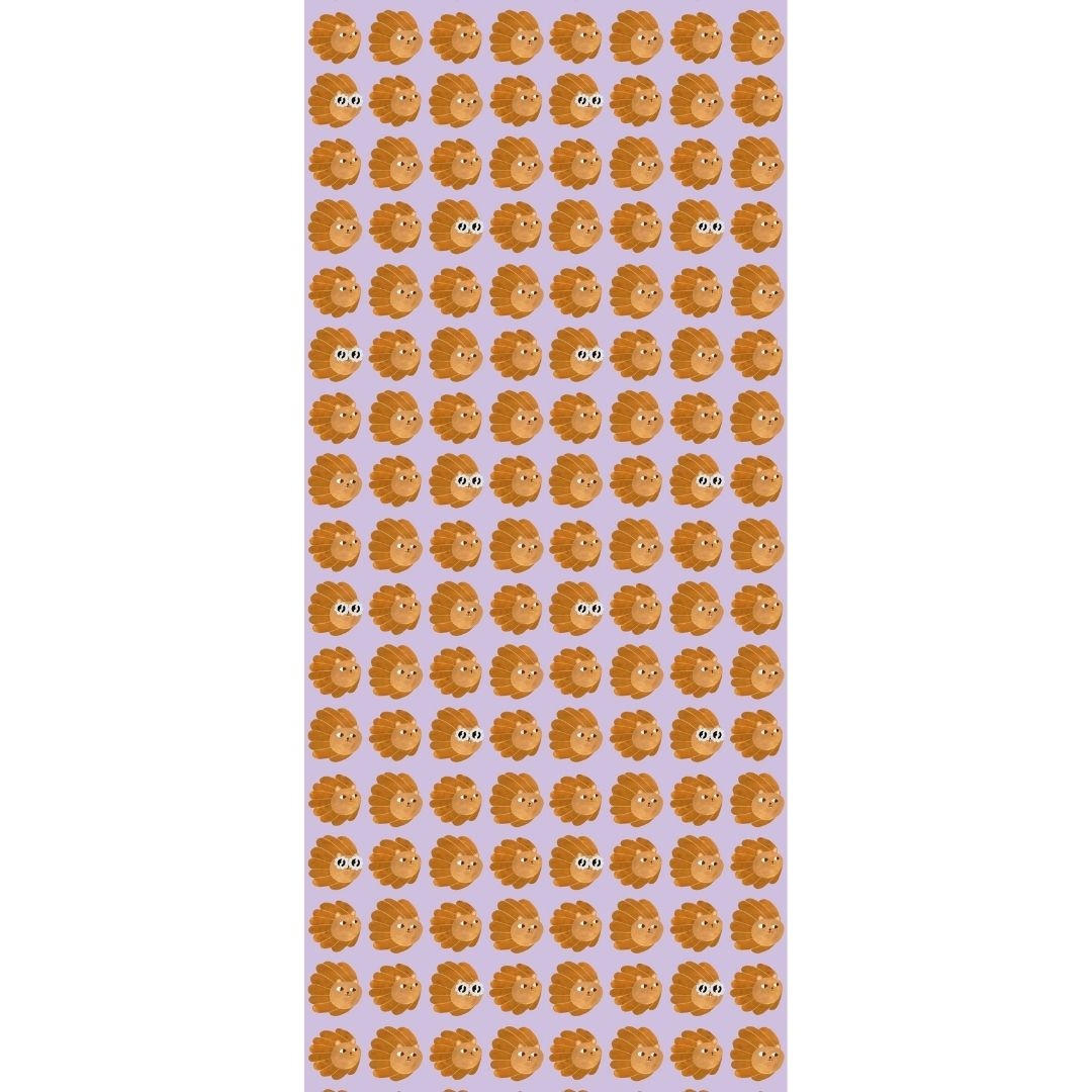 Lion Heads Lilac brengt een elegante lilac achtergrond samen met de speelse, handgeschilderde leeuwenhoofden van Aniek. De digitaal toegevoegde details — waaronder de lichtblauwe brilletjes — geven het patroon een frisse, moderne uitstraling.