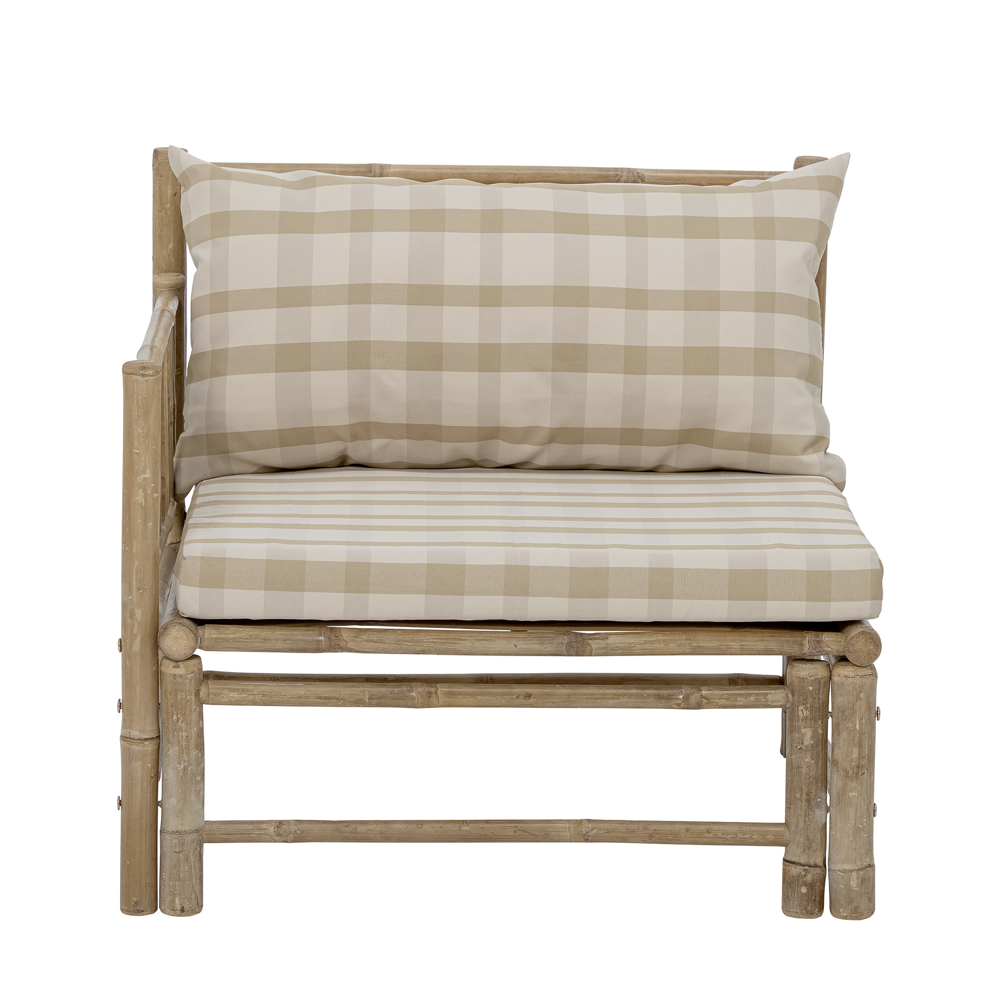 The Korfu Module Sofa Left Corner by Bloomingville is a part of the Korfu series where you can mix and match the modules and make your own outdoor sofa based on your needs! The series is made of bamboo to achieve the organic, cozy and homely feel of the natural material. The design is amazing with a scandinavian touch with cushions made of polyester in beautiful soft colors. The modules are easy to assembly with velcro at each modul. Just perfect for the terrace, garden our a little orangery. Material: Bamboo, Care instructions: If exposed to moist, bamboo will absorb dust and dirt, and the colour will turn grey in time. We recommend to place in covered area. Clean with moist cloth and rub in tested furiture oil., Washing instructions: Machine wash 30 degrees