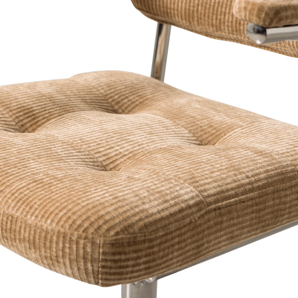 - Stijlvolle bureaustoel - Bekleed met zachte ribstof (100% PES) - Draaibaar en in hoogte verstelbaar - H 87 cm x B 54 cm x D 60 cm Studeren of werken in stijl, met onze Kova bureaustoel zit jij comfortabel en stijlvol aan jouw bureau. De Kova komt uit de collectie van het Nederlandse interieurmerk WOOOD. De stoel heeft wieltjes en een hendel om de zithoogte te verstellen. De stoel heeft zowel een gestoffeerde zitting, rugleuning als armleuningen, dit zorgt ervoor dat de stoel een hoog zitcomfort heeft. Zoek niet verder en haal de Kova bureaustoel snel in huis. Materiaal onze Auckland-ribstof heeft een zachte grip en voelt comfortabel aan. De stof is gemaakt van 100% polyester en valt op door zijn bijzondere geribbelde patroon en luxe uitstraling. De textuur van de stof zorgt voor een speelse lichtreflectie en een dynamisch effect. De stof heeft een Martindale van 30.000. Afmetingen - Hoogte: 87 cm - Breedte: 54 cm - Diepte: 60 cm - Zithoogte hoogste stand: 56 cm - Zithoogte laagste stand: 42 cm - Zitbreedte: 46 cm - Zitdiepte: 46 cm - Breedte armleuning: 5,5 cm - Hoogte armleuning: 21 cm - Breedte rugleuning: 44,5 cm - Hoogte rugleuning: 34 cm - Gewicht: 9,7 kg - Draaggewicht: 125 kg Onderhoud De compact ribstof is eenvoudig schoon te houden met de stofzuiger met meubelborstel. Bij eventuele vlekken direct droog deppen met een schone doek of tissue. Beslist niet wrijven! De meeste vloeistoffen zijn te verwijderen met lauw water. Let op: gebruik geen chemicalien zoals bleek om de stof schoon te maken. Maak gebruik van een zachte, ronddraaiende beweging van buiten naar binnen. Levering Het artikel wordt per stuk geleverd.