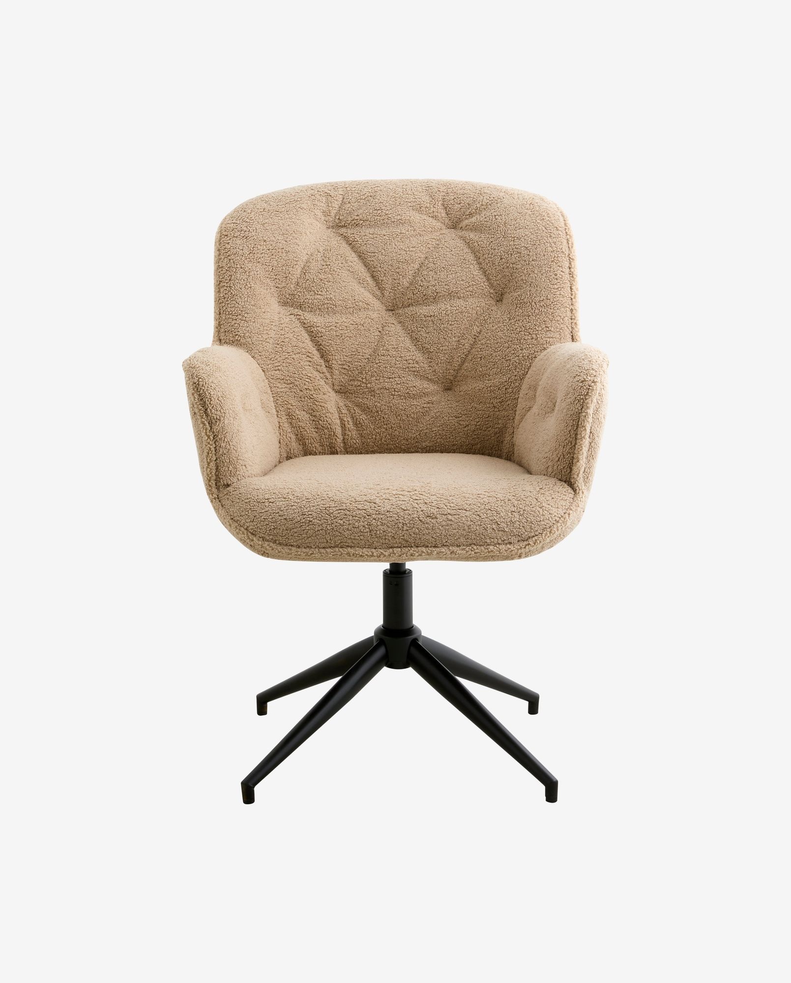 LEA office chair is made of bouclé with a black metal base. A comfortable chair that elegantly balances comfort, functionality, and design. The chair provides excellent seating comfort.#The seat can rotate 360 degrees.##Seat height: 51 cm.#Seat depth: 51 cm.#Max 150 kg.