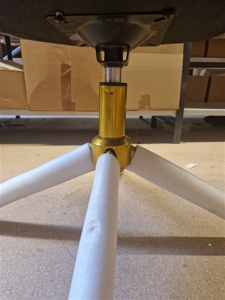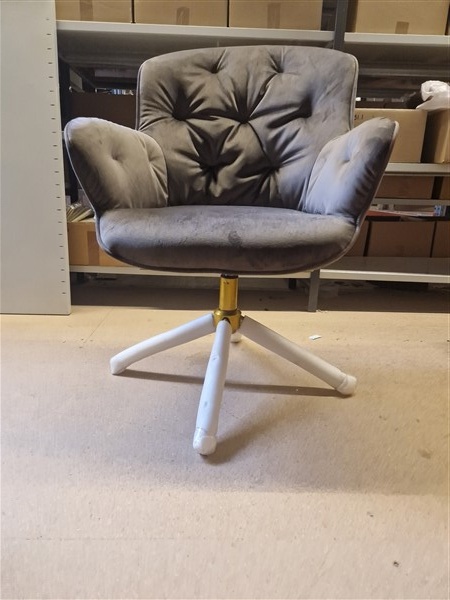LEA office chair has a seater in a light brown velvet and with a frame in golden metal. Seat height: 52 cm. Seat depth: 50 cm.
