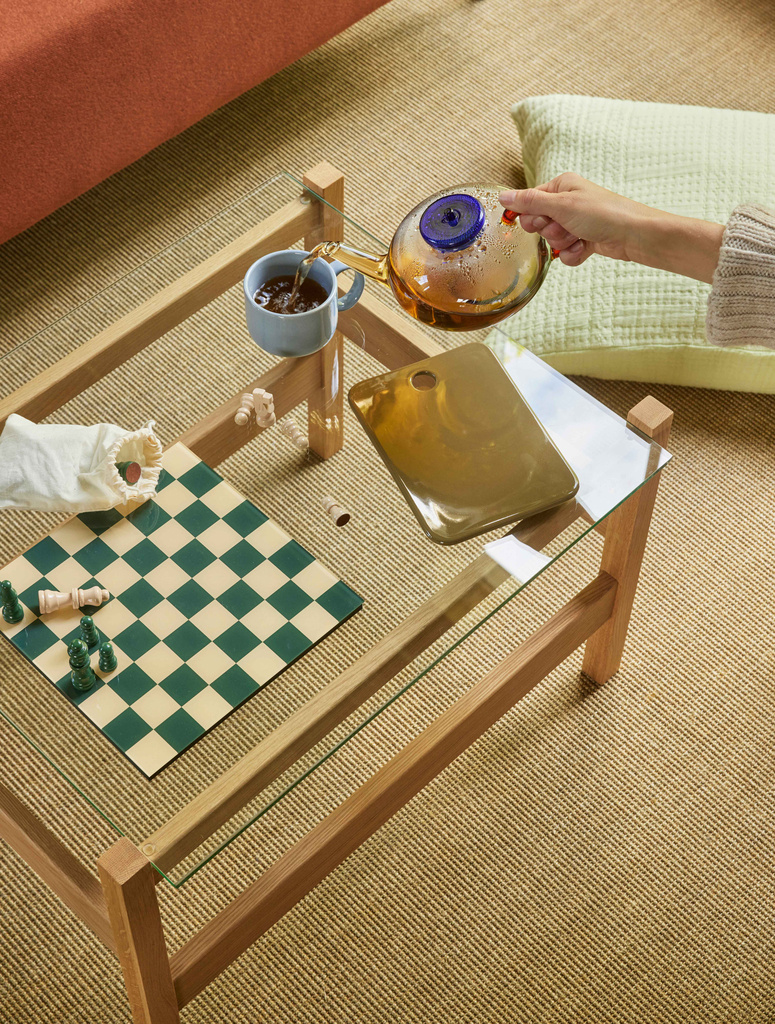 Discover the elegance of the Ledge Side Table, where the charm of natural oak meets the sophistication of a clear glass top. Crafted from FSC-certified wood, this table features a geometric shape of lines, artfully constructing its sturdy base. The glass tabletop not only creates a light, airy feeling but also draws your eye to the beautiful framework beneath. Perfect beside your favourite armchair, it's an exquisite piece that elegantly blends functionality with style.