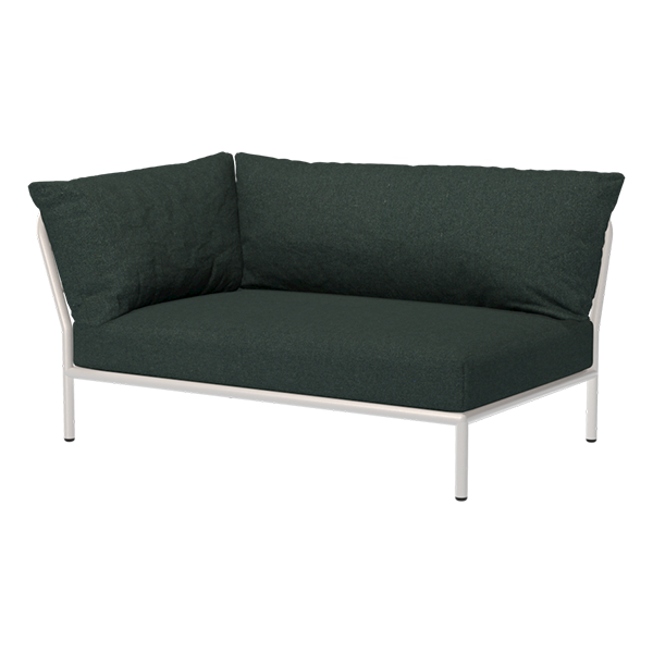 It’s all about level, to come eye to eye with nature, to relate to the horizon and to get lines and shapes to move up to a higher level! The lightweight frame and soft cushions creates both contrast and comfort – and lures with relaxed lounge atmosphere. LEVEL is a modular lounge collection consisting of 2 sofa modules – one left and one right - a single lounge chair, an ottoman, a coffee table and a side table, which makes it possible to mix the modules in many different ways. The Alpine green cushions are made with Sunbrella Heritage fabric which contains 50% recycled acrylic. Colorfull fibre ends from the process of reusing the primary material may appear in the weave and vary the fabric colour from one batch to another. This creates a unique fabric with a natural look and vintage charm. The fabric is Oeko-tex certified, water-repellent, stain-proof and easy to maintain. DIMENSIONS: H:68,5 x W:139 x D:92,5 cm MATERIALS: Legs: Powder coated grey aluminum Cushions: Alpine green / Sunbrella - Heritage 18018 00 137 / 50% recycled acrylic, 47% acrylic, 3% polyester. Water-repellent and stain-proof. DESIGNED BY: Henrik Pedersen . Seat Height: 38 cm