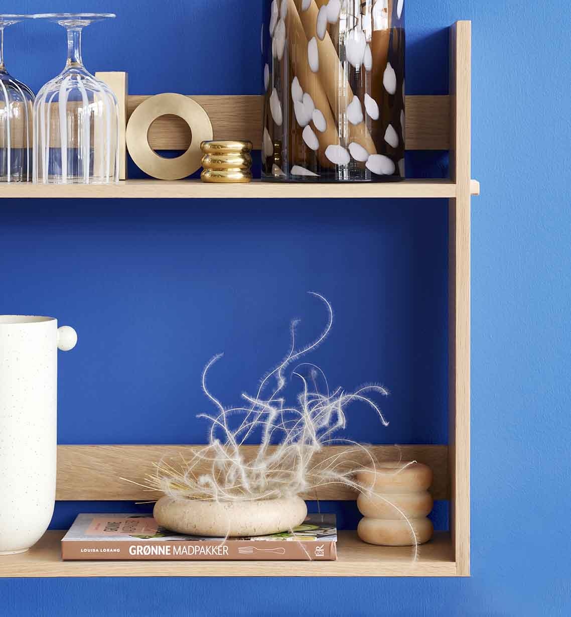 Lojo Shelf is made in solid oak. The beautiful oaks texture and warm Color gives peace of mind to any room. The shelf is made in Europe, and comes assembled, so it is super easy to hang on the wall. Use the Lojo Shelf in the kitchen for cookbooks or in the living room with your favorite novels or magazines.