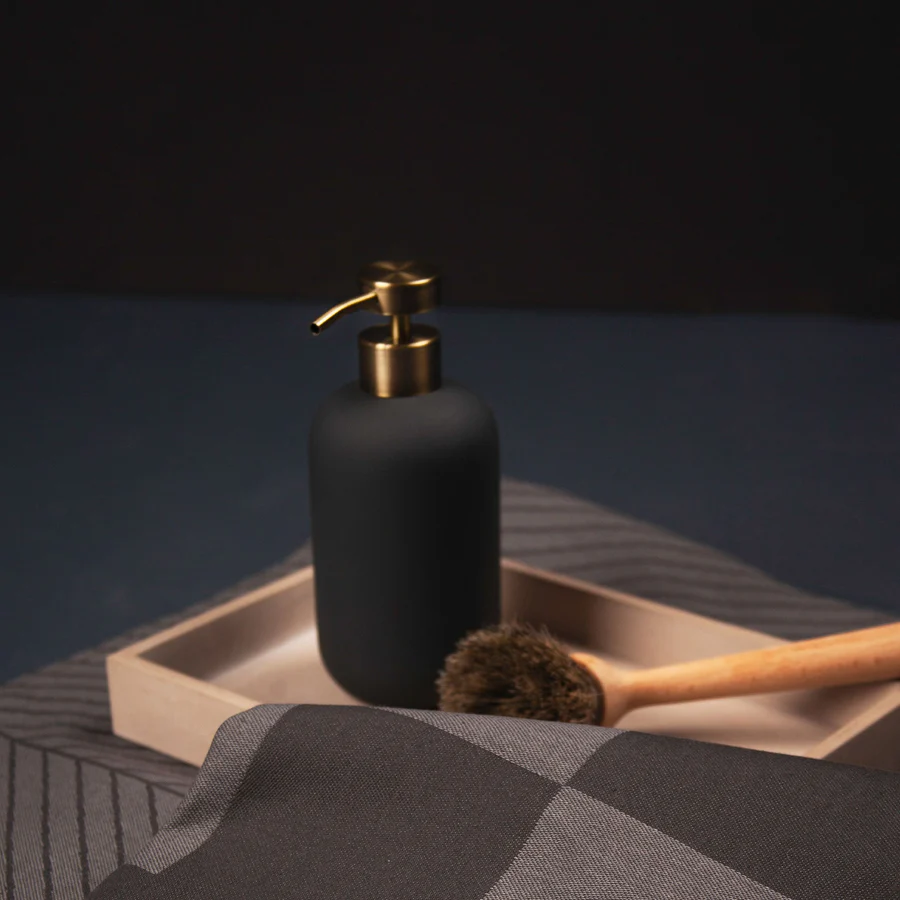 The bathroom series LOTUS has soft and organic forms, and is made of ceramic coated with a matte rubber finish. This gives the surface of the products a sleek and exclusive look. Use the dispenser for soap in the bathroom, or for dish soap in the kitchen. Material: ceramic with rubberfinish, metal pump Material: ceramic with rubberfinish, metal pump - Washing/Care Instructions: Clean with hot water, until there is a free flow of water through the pump. Do only clean with dish soap. The products are not dishwasher safe.