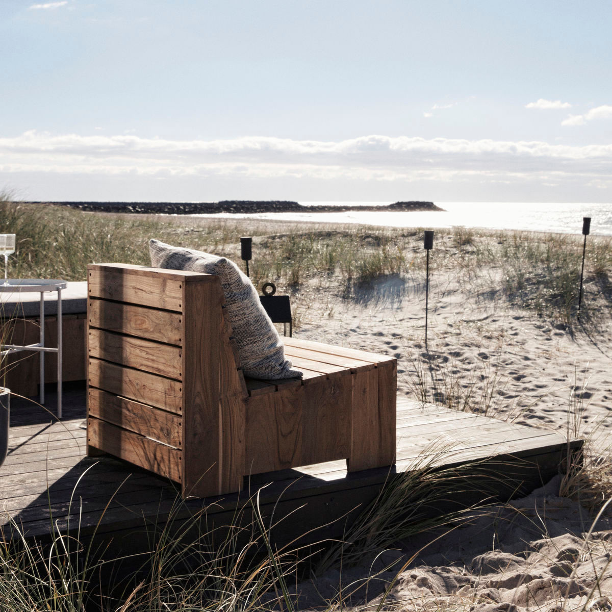 Create a wonderful lounge environment on the terrace or in your garden with stunning outdoor furniture. The lounge chair, Woodie, from House Doctor is made of teak. The wood has naturally high oil content meaning that it lasts for a long time without degrading. This type of wood is therefore ideal for the garden. With time, the teak wood will get a greyish cast and patina. Maintain the lounge chair by treating it with oil at regular intervals. It will retain its glow. Maintenance pamphlet is included. Material: Teak Care instructions:
