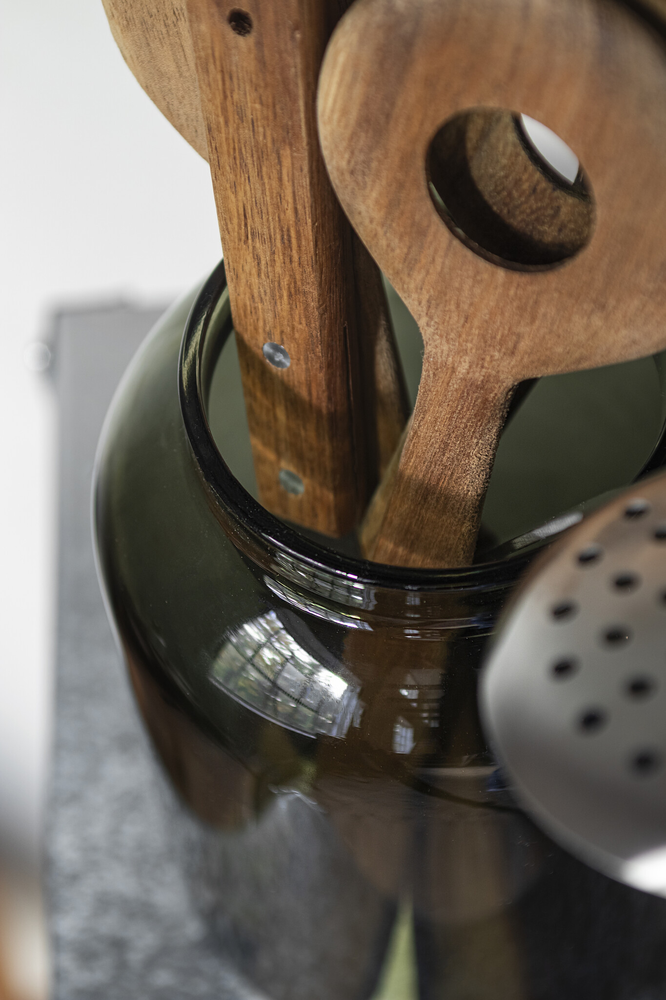 The large LUNA glass jar in deep green combines elegance and functionality. Use it for storing foods like pasta, rice, or dried beans, for keeping kitchen utensils within easy reach, or even as a decorative vase for flowers. Its tall and spacious design makes it both versatile and decorative—a beautiful addition to the kitchen or any other room.
