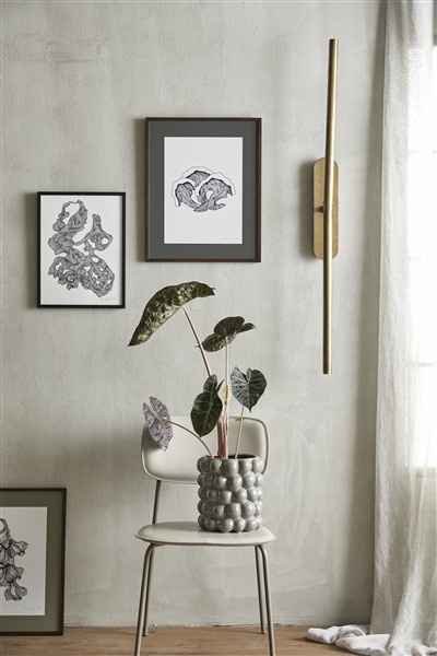LUNA wall lamp is made of100% brass which looks will patinate over time. The lamp can be mounted both vertical and horizental. The lamp requires a fluorescent bulb wich is not included. The bulb is 51,70 cm long.#