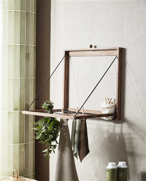 MACAS drying rack made from wood is a great, convenient way to hang your laundry on the wall. The drying rack can be folded, making it take up a minimum of space, when not in use. MACAS has clotheslines in black textile and is perfect for rooms with limited space. Material: Firwood, nylon string