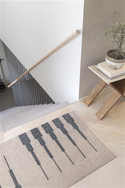 Create a warm welcome for your guests with the ALL-ROUND MARKER design mat, seamlessly blending functionality, and beauty. Made from durable nylon pile and featuring a PVC-free non-slip rubber back, this mat efficiently absorbs substantial amounts of dirt and moisture. When required, it can be effortlessly cleaned in the washing machine at 40°C. With its low height, the mat easily slides beneath most doors, proving to be a versatile and indispensable addition to your home. The MARKER design brings a contemporary aesthetic to these practical mats. The subdued light grey colour, combined with the iconic Mette Ditmer details in unexpected yet thoughtfully chosen colours and graphic shapes, ensures the mat's suitability for any room, adding both warmth and style to any floor. A functional addition for every corner of your home, whether it's the living room, kitchen, bathroom, hallway, bedroom, and more. Material: Nylon front, PVC-free rubber back Material: Nylon front, PVC-free rubber back - Washing/Care Instructions: Wash at max. 40°C gentle wash, tumble dry.
