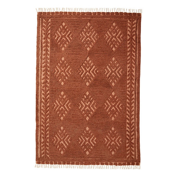 MARLA carpet in a wool blend. A carpet that, with its striking look, creates a pleasant and comfortable atmosphere in any room. MARLA comes in a warm rust color, which brightens up your décor and adds an exotic touch. A carpet with a thick, soft pile sure to provide a feeling of luxurious comfort in your home.##The carpet is handcrafted, so irregularities and size variations may occur.