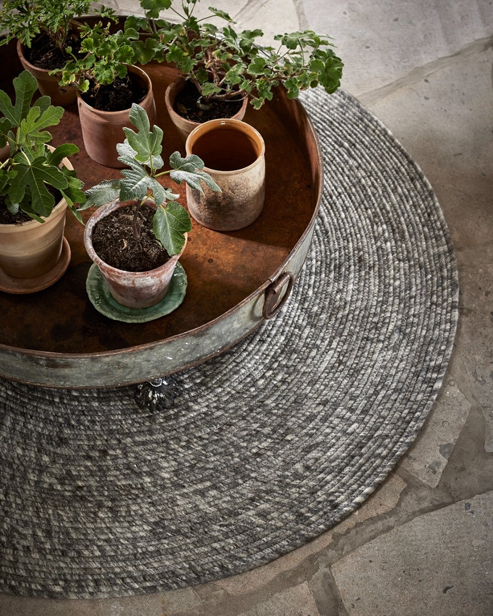 Add a touch of contemporary style to your living space with the Merino Grey Round Rug. This hand-woven round rug features a unique grey color, perfect for adding a modern touch to any room. Made with a wool blend and cotton warp, this rug is both durable and soft to the touch. The thick, soft yarn makes it pleasant to walk on. Its reversible design adds versatility and longevity to your rug. The Merino Grey Round Rug is available in two standard sizes 160 and 200 cm, and each rug is handmade and may have a slight size variation of +/- 5%. This rug is not only beautiful but also ethically and sustainably made, meeting the standards of Care & Fair certification.Material: Wool. As these rugs are hand made, there will be some small variation in actual sizes (+/- 4%)Weave/Pile height: 1,5cmReversible: Yes