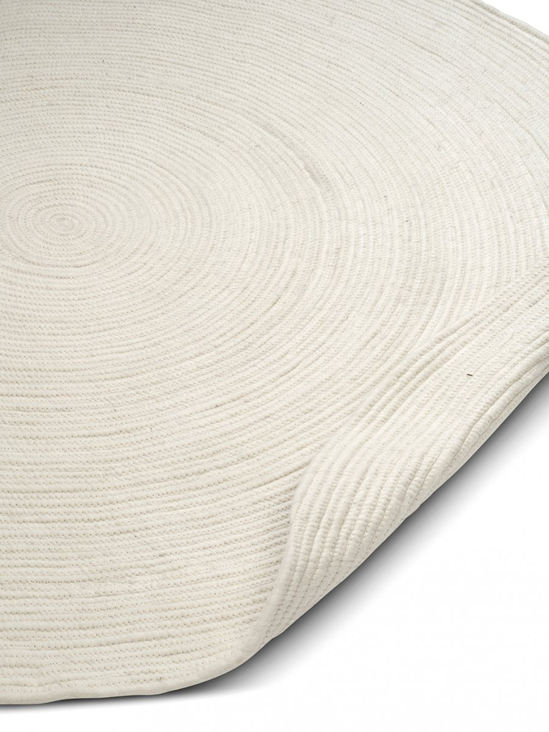 This hand-woven round rug features a unique white color, perfect for adding a modern touch to any room. Made with a wool blend and cotton warp, this rug is both durable and soft to the touch. The thick, soft yarn makes it pleasant to walk on. Its reversible design adds versatility and longevity to your rug. The Merino White Round Rug is available in two standard sizes 160 and 200 cm, and each rug is handmade and may have a slight size variation of +/- 5%. This rug is not only beautiful but also ethically and sustainably made, meeting the standards of Care & Fair certification.