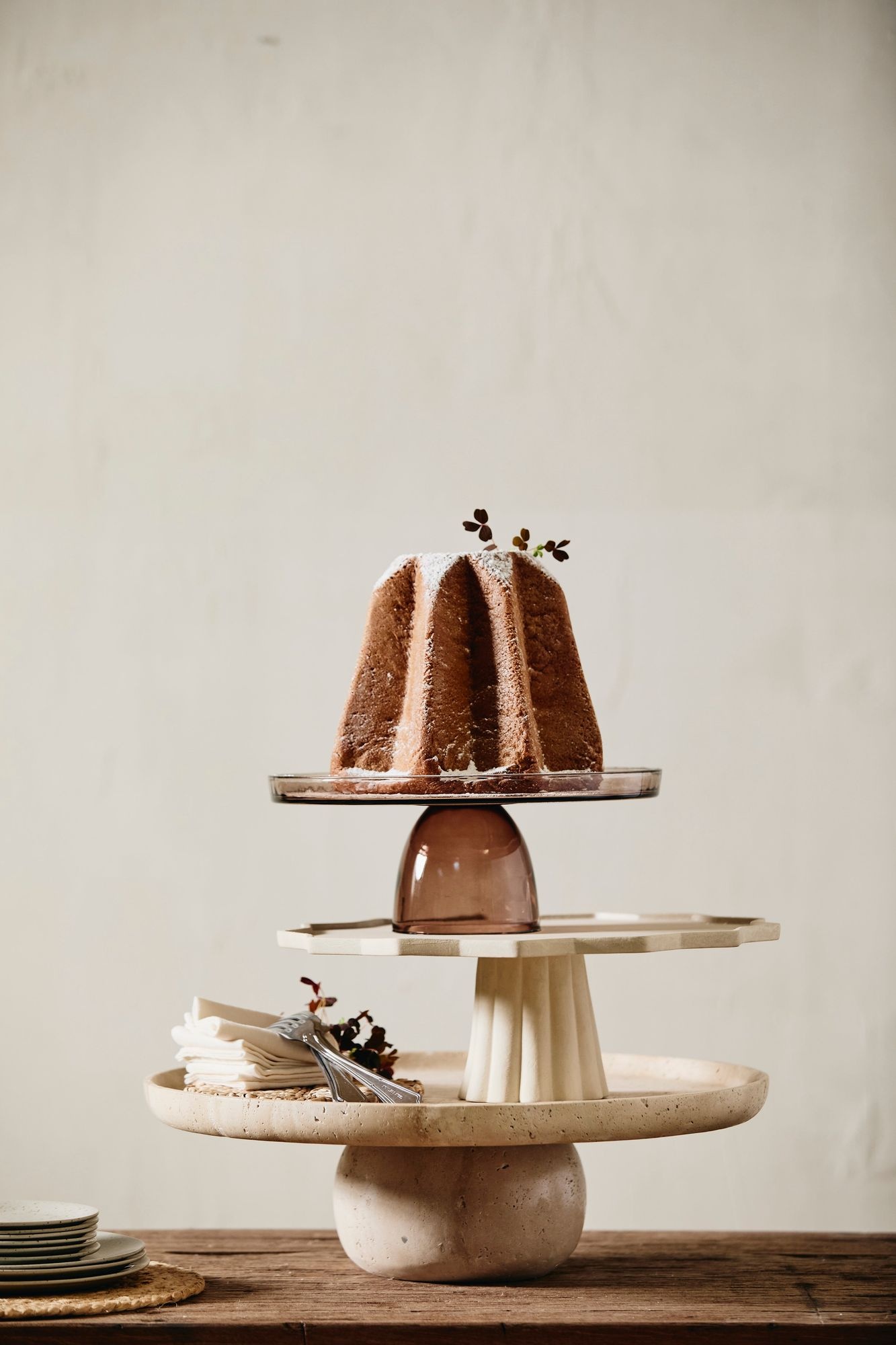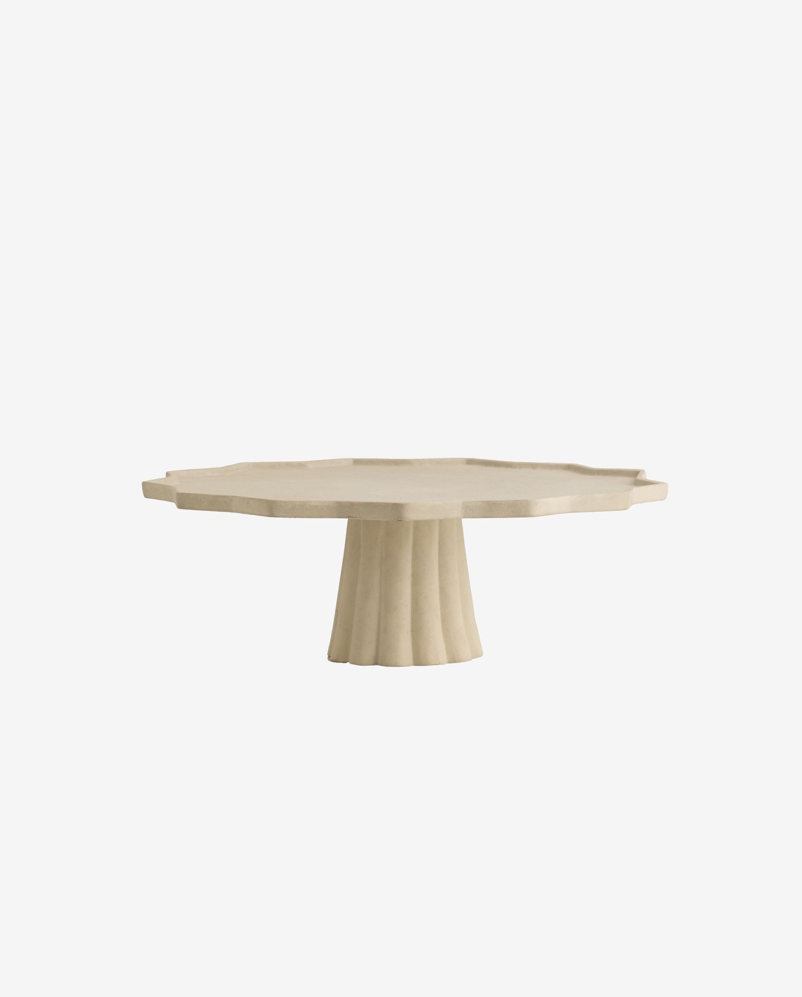 The MINU Tray with a beautiful, Textured Surface.#With its round, slightly wavy edge and the vertical ridges on the foot, the platter has a classic expression, where the pleated details add both elegance and grace.#It is perfect for serving cakes or other treats, while also functioning as a decorative centerpiece on the table.##It is recommended to wash the tray by hand.