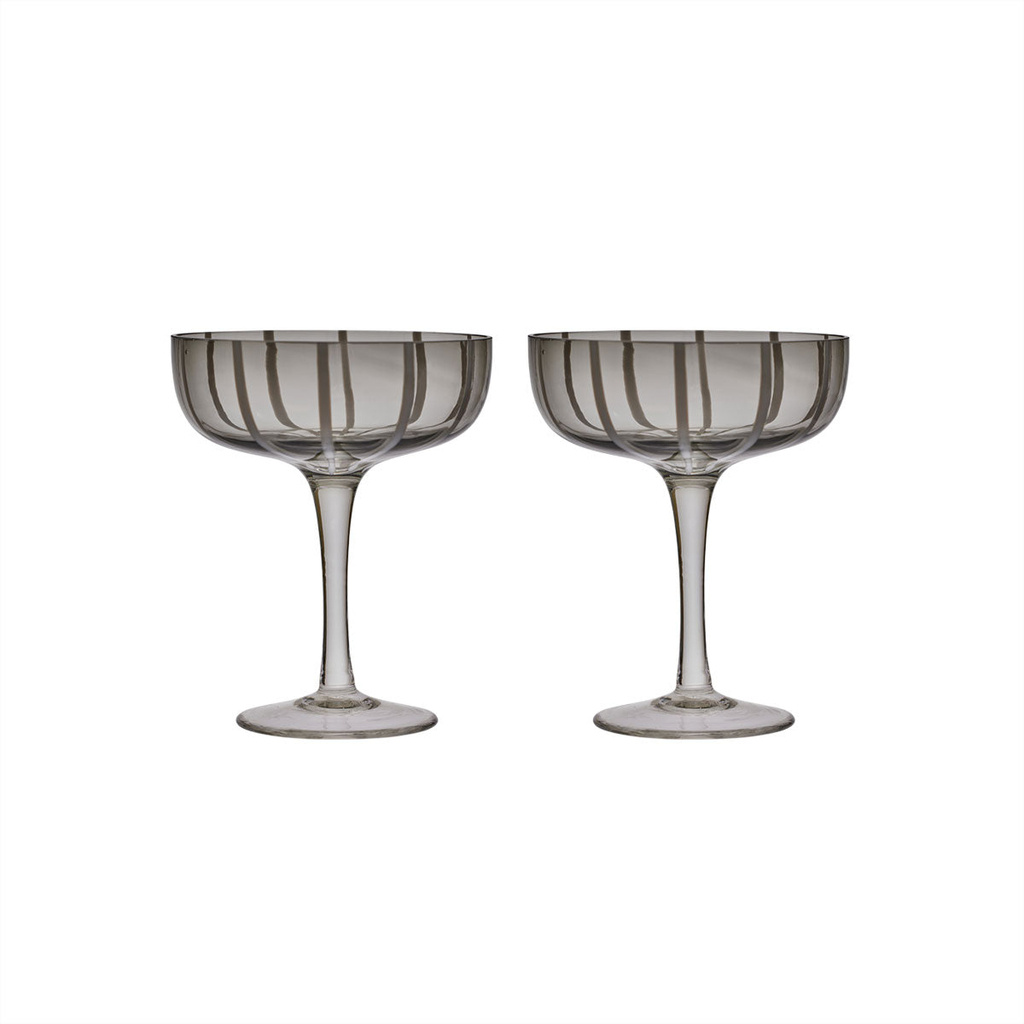 Serve your loved ones their favorite cocktail, ice cream dessert or champagne in the striped, gray coupe glass from OYOY. The Mizu series is characterized by an elegant, light and modern appearance - which attracts everyone's attention. The coupe glass is designed with an elegant and long neck, combined with a large and wide bowl. Each glass is unique because it is mouth-blown and has handmade details. The Mizu Coupe Glass comes in a set of two. The glass has a capacity of 230 ml. Dishwasher safe. Style number: L300549 Color: Gray Quality: 100% Glass Dimensions: Ø11.5 x H14 cm. Type: One Size.