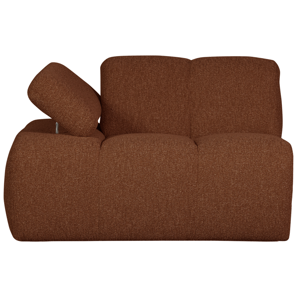 - Comfortabele bankenserie - Onderdeel van de Mojo-serie - Eindeloze combinatie en uitbreidingsmogelijkheden - H 74 cm x B 120 cm x D 97 cm Transformeer je woonkamer met de veelzijdige Mojo elementenbank uit de collectie van het Nederlandse merk WOOOD. De Mojo-serie biedt eindeloze mogelijkheden, van een royale hoekbank tot compacte zitoplossingen zodat je de perfecte bankopstelling kunt creeren voor jouw ruimte. Met zijn stijlvolle verticale stiksels voegt de Mojo een speelse en unieke twist toe aan elk interieur. Dankzij de handmatig verstelbare armleuningen biedt de Mojo extra flexibiliteit en comfort. Of je nu wilt ontspannen na een lange dag of gezellig wilt samenkomen met familie en vrienden, de Mojo is de plek waar je heerlijk kunt wegzakken en genieten. Creeer jouw ideale zitplek met de Mojo, waar stijl en comfort naadloos samenkomen. Het 1-zits element is te bestellen met de armleuning aan de linker- en rechterkant. Dit maakt dat de bank geschikt is voor diverse interieuropstellingen. Materiaal Liora is een verfijnde boucle stof met een subtiele kleurmelange en een stevige grip. Deze elegante stof, vervaardigd uit 100% polyester, heeft een Martindale van 100.000, wat betekent dat de stof geschikt is voor intensief woongebruik. De stevige boucle structuur zorgt ervoor dat de stoffering zijn vorm behoudt en lang meegaat, zelfs bij dagelijks gebruik. Afmetingen - Hoogte: 74 cm - Breedte: 120 cm - Diepte: 97 cm - Zithoogte: 45 cm - Zitbreedte: 80 cm - Zitdiepte: 60 cm - Hoogte rugleuning: 39 cm - Diepte rugleuning: 22 cm - Armleuning hoogte v/a vloer: 80 cm - Armleuning hoogte v/a zitting: 14 cm - Diepte armleuning: 81 cm - Poothoogte: 2,5 cm - Draaggewicht: 120 kg - Gewicht: 39 kg Onderhoud De boucle stof is een eenvoudige stof in onderhoud. Bij vlekken is het aangeraden om te deppen, wrijving kan zorgen voor lichte plekken. Meeste vloeistoffen zijn te verwijderen met lauw water. Maak gebruik van een zachte, ronddraaiende beweging van buiten naar binnen. Houd de stof eenvoudig stofvrij met een speciale meubelborstel van de stofzuiger. Als de stof losgehaald kan worden middels een rits is wassen op 30 graden mogelijk. Levering Dit item wordt geleverd in een pakket. Plaats bij harde vloeren viltglijders onder de poten. Dit voorkomt beschadigingen aan de vloer.