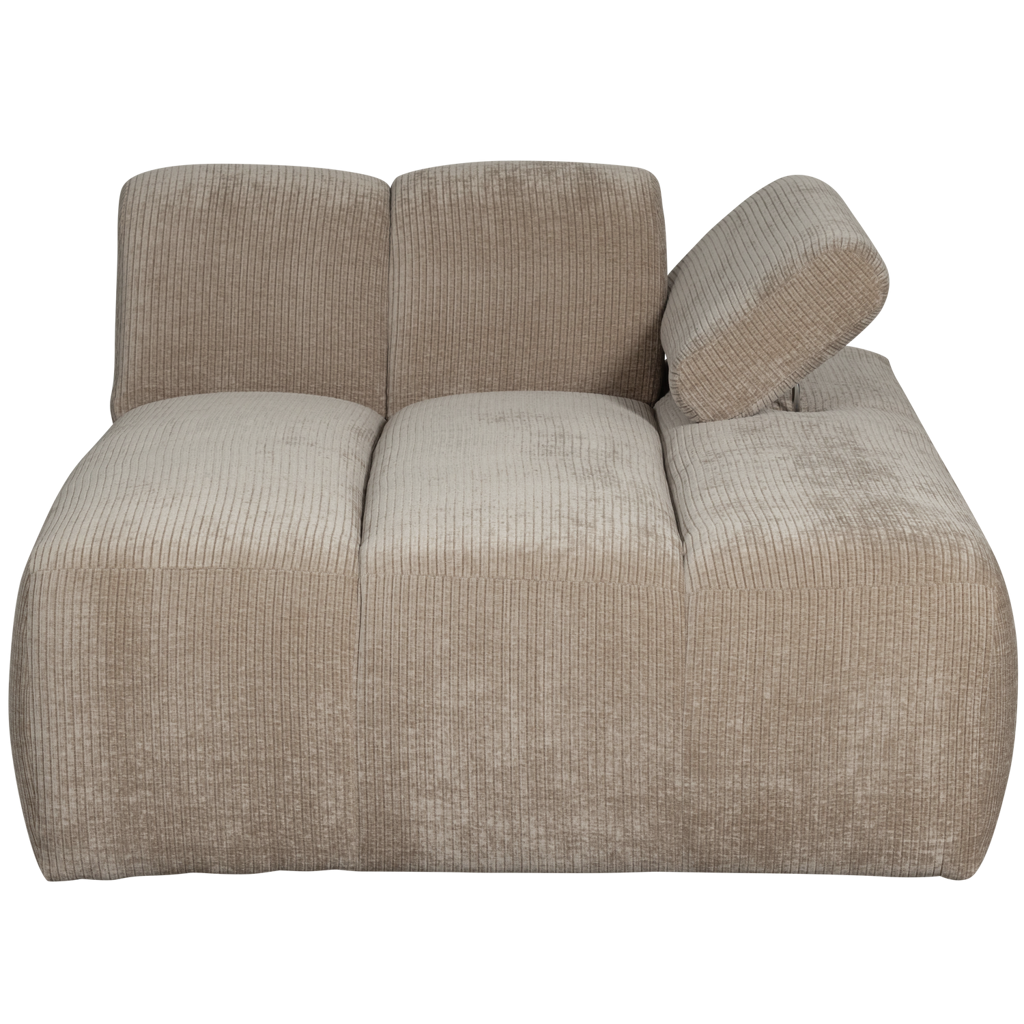 - Comfortabele bankenserie - Onderdeel van de Mojo-serie - Eindeloze combinatie en uitbreidingsmogelijkheden - H 74 cm x B 162 cm x D 122 cm Transformeer je woonkamer met de veelzijdige Mojo elementenbank uit de collectie van het Nederlandse merk WOOOD. De Mojo-serie biedt eindeloze mogelijkheden, van een royale hoekbank tot compacte zitoplossingen zodat je de perfecte bankopstelling kunt creeren voor jouw ruimte. Met zijn stijlvolle verticale stiksels voegt de Mojo een speelse en unieke twist toe aan elk interieur. Dankzij de handmatig verstelbare armleuningen biedt de Mojo extra flexibiliteit en comfort. Of je nu wilt ontspannen na een lange dag of gezellig wilt samenkomen met familie en vrienden, de Mojo is de plek waar je heerlijk kunt wegzakken en genieten. Creeer jouw ideale zitplek met de Mojo, waar stijl en comfort naadloos samenkomen. Het chaise longue element is te bestellen met de armleuning aan de linker- en rechterkant. Dit maakt dat de bank geschikt is voor diverse interieuropstellingen. Materiaal De Remy Rib is een moderne stof die een luxe uitstraling biedt. Dankzij de bijzondere jacquard weeftechniek heeft de stof een rijke textuur en een fluweelachtig uiterlijk. Onze Remy Ribstof is gemaakt van 100% polyesterdraad, wat zorgt voor een zachte touch. Met een Martindale score van 80.000 hoef je je geen zorgen te maken over krassen of pillen. Bovendien heeft de ribstof een verstevigde backing en oogt volumineus vanwege de brede banen. Afmetingen - Hoogte: 74 cm - Breedte: 162 cm - Diepte: 122 cm - Zithoogte: 45 cm - Zitbreedte: 122/86 cm - Zitdiepte: 124 cm - Hoogte rugleuning: 39 cm - Diepte rugleuning: 22 cm - Armleuning hoogte vanaf vloer: 80 cm - Armleuning hoogte vanaf zitting: 14 cm - Diepte armleuning: 81 cm - Poothoogte: 2,5 cm - Draaggewicht: 120 kg - Gewicht: 58 kg Onderhoud Zorg dat je bij ribstof altijd vlekken verwijdert met de rib mee. Deppen met een lichtvochtige, schone doek laat de meeste vlekken eenvoudig verwijderen. Is de vlek hardnekkiger? Laat een vochtige doek de vlek absorberen. Het eventueel naborstelen met een zachte borstel zal ervoor zorgen dat de ribstof heerlijk zacht blijft aanvoelen. Als de stof losgehaald kan worden middels een rits is wassen op 30 graden mogelijk. Levering Dit item wordt geleverd in een pakket. Plaats bij harde vloeren viltglijders onder de poten. Dit voorkomt beschadigingen aan de vloer.