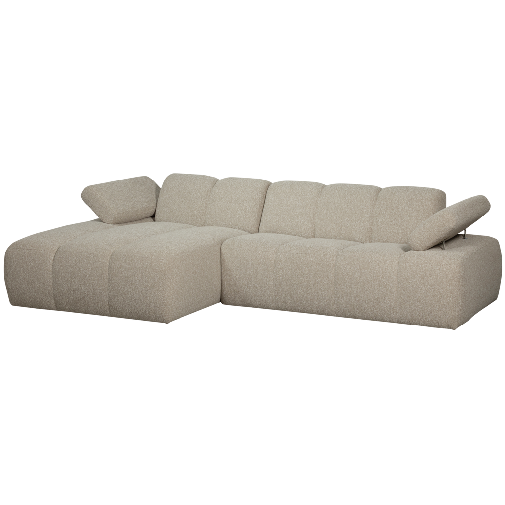 - Comfortabele bankenserie - Onderdeel van de Mojo-serie - Eindeloze combinatie en uitbreidingsmogelijkheden - H 74 cm x B 280 cm x D 160 cm Transformeer je woonkamer met de veelzijdige Mojo elementenbank uit de collectie van het Nederlandse merk WOOOD. De Mojo-serie biedt eindeloze mogelijkheden, van een royale hoekbank tot compacte zitoplossingen zodat je de perfecte bankopstelling kunt creeren voor jouw ruimte. Met zijn stijlvolle verticale stiksels voegt de Mojo een speelse en unieke twist toe aan elk interieur. Dankzij de handmatig verstelbare armleuningen biedt de Mojo extra flexibiliteit en comfort. Of je nu wilt ontspannen na een lange dag of gezellig wilt samenkomen met familie en vrienden, de Mojo is de plek waar je heerlijk kunt wegzakken en genieten. Creeer jouw ideale zitplek met de Mojo, waar stijl en comfort naadloos samenkomen. De chaise longue bank is te bestellen met het lange gedeelte aan de linker- en rechterkant. Dit maakt dat de bank geschikt is voor diverse interieuropstellingen. Materiaal Liora is een verfijnde boucle stof met een subtiele kleurmelange en een stevige grip. Deze elegante stof, vervaardigd uit 100% polyester, heeft een Martindale van 100.000, wat betekent dat de stof geschikt is voor intensief woongebruik. De stevige boucle structuur zorgt ervoor dat de stoffering zijn vorm behoudt en lang meegaat, zelfs bij dagelijks gebruik. Afmetingen - Hoogte: 74 cm - Breedte: 280 cm - Diepte: 160 cm - Zithoogte: 45 cm - Zitbreedte: 213 cm - Zitdiepte: 124/ 60 cm - Hoogte rugleuning: 39 cm - Diepte rugleuning: 22 cm - Armleuning hoogte v/a vloer: 80 cm - Armleuning hoogte v/a zitting: 14 cm - Diepte armleuning: 81 cm - Poothoogte: 2,5 cm - Draaggewicht: 120 kg per zitplaats - Gewicht: 39 kg Onderhoud De boucle stof is een eenvoudige stof in onderhoud. Bij vlekken is het aangeraden om te deppen, wrijving kan zorgen voor lichte plekken. Meeste vloeistoffen zijn te verwijderen met lauw water. Maak gebruik van een zachte, ronddraaiende beweging van buiten naar binnen. Houd de stof eenvoudig stofvrij met een speciale meubelborstel van de stofzuiger. Als de stof losgehaald kan worden middels een rits is wassen op 30 graden mogelijk. Levering Dit item wordt geleverd in twee pakketten. Plaats bij harde vloeren viltglijders onder de poten. Dit voorkomt beschadigingen aan de vloer.