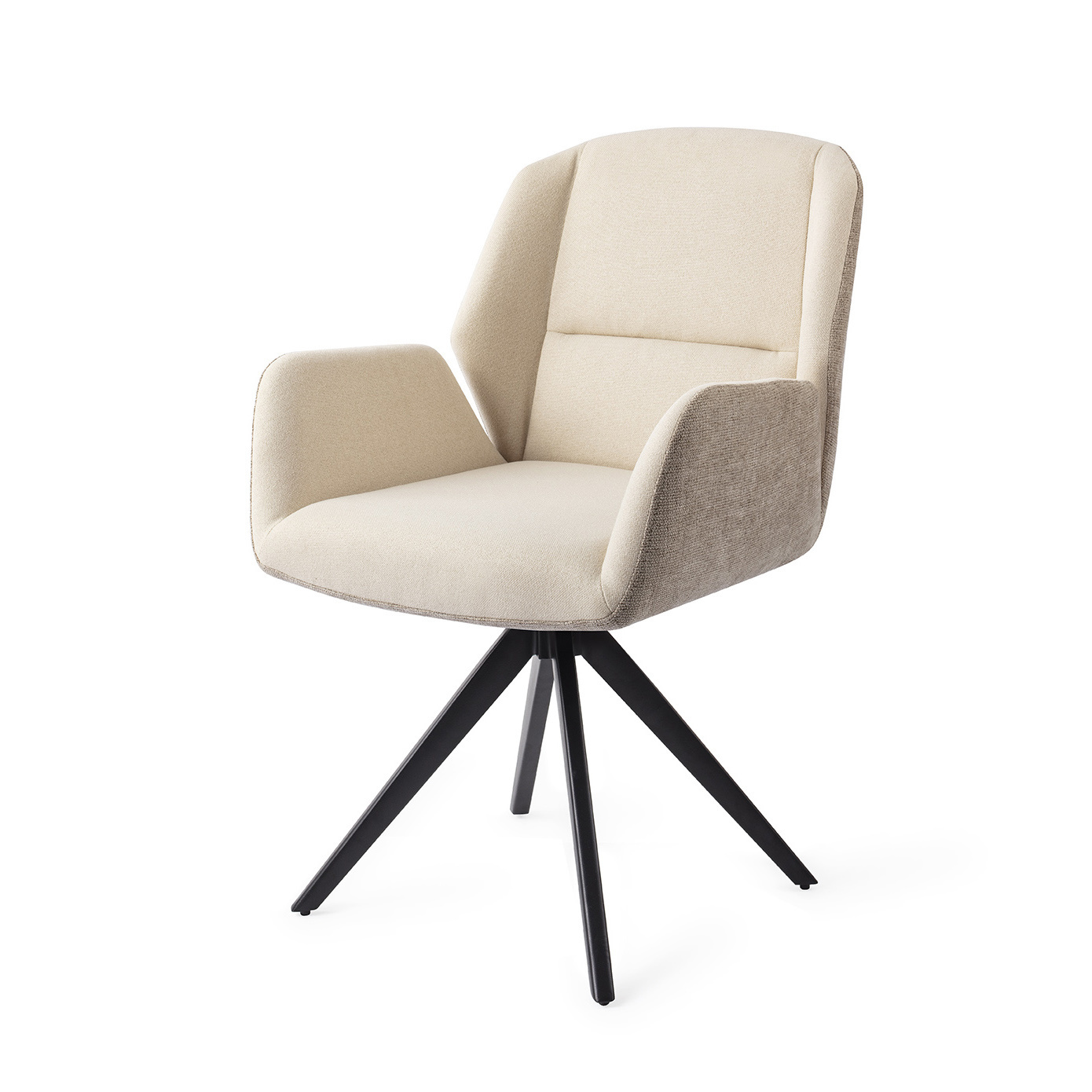 _x000D_De zitting van de Myoko heeft een mooi verdeelde schuimlaag die niet te hard en niet te zacht is. Stevige armleuningen en de rechte rugleuning zorgen voor een juiste zithouding met voldoende steun. De zitting is bekleed met twee verschillende stoffen in verschillende kleuren wat zorgt voor een speels contrast en tegelijkertijd eenheid door de neutrale kleuren.