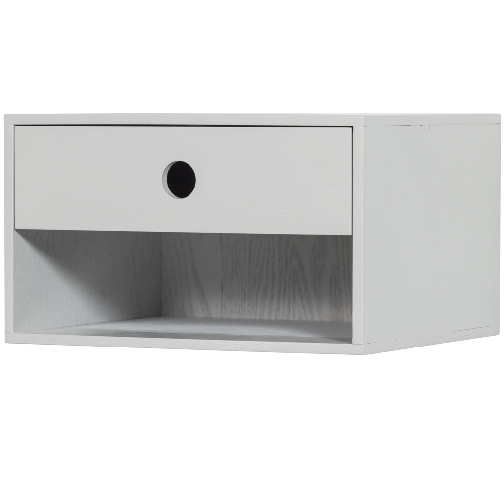 - Nachtkastje met zwevend effect - Vervaardigd uit afgelakt MDF - Inclusief eenvoudige wandmontage - H 20 cm x B 34 cm x D 30 cm Het Nancy hangende nachtkastje komt uit de collectie van het Nederlandse interieurmerk WOOOD en is onopvallend stijlvol door het eenvoudige design. Het gebruik van het afgelakte MDF hout zorgt ervoor dat het nachtkastje kalmte uitstraalt en zich gemakkelijk in de stijl van jouw slaapkamer voegt. Materiaal Het MDF plaatmateriaal uit onze collecties wordt gevormd uit geperste houtvezels welke onder druk worden verkleefd met behulp van hars. Hierdoor heeft dit materiaal een zeer glad oppervlakte. Het MDF in onze collecties wordt verwerkt in de achterwanden van een selectie opbergmeubelen. MDF biedt de basis voor notenhout of - eikenhout fineer. Elke gefineerde MDF plaat wordt in onze eigen fabriek voorzien van een transparante, beschermende coating. Afmetingen - Hoogte: 20 cm - Breedte: 34 cm - Diepte: 30 cm - Ladefront: H 9 x B 32 cm - Ladeinhoud: H 6,5 x B 30 x D 24 cm - Ladegat: O 3 cm - Open vak: H 9 x B 32 x D 28 cm - Ophangsysteem: Lat met schuine rand, H 4 x B 31,5 x D 1,5 cm, inclusief 2+1 schroeven en 2+1 universele wandpluggen. - Draaggewicht: 5 kg per lade/vak Onderhoud Het voordeel van geperst plaatmateriaal is dat het niet zal versplinteren of kromtrekken. Wel is het materiaal door de sterk zuigende werking zeer gevoelig voor vocht en hitte. Hierdoor zal het MDF uitzetten en kan niet meer terugvormen naar zijn oorspronkelijke staat. Levering Het item wordt in een pakket geleverd en is eenvoudig te monteren aan de hand van de bijgeleverde montagehandleiding.
