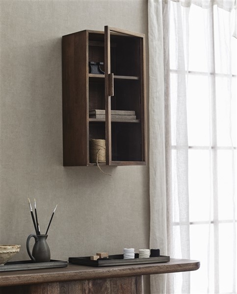 NANGO wall cabinet is made in solid mango wood. The two doors is with glass and inside the cabinet there is two wooden shelves. On the back of the cabinet there is a horizontal bracket for easy hanging. The max weight is 10 kg - Screws are note included Material:Mango wood, veener, metal, glass