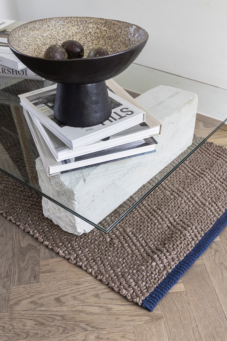 The JUTE runner from Mette Ditmer blends rustic charm with refined craftsmanship. Hand-woven from 100% natural jute, the rug features a distinctive weave that brings texture and subtle variation to the surface. A soft Latte tone is beautifully framed by a cobalt blue border, adding a modern twist to the otherwise understated design. With its robust structure and natural materials, the runner is ideal for everyday areas such as the Kitchen, hallway or by the garden door. Tip: To protect your floor and ensure the rug stays in place, we recommend using a non-slip underlay. - Material: 100% jute - Washing/Care Instructions: Vacuum the runner regularly. Washing is not recommend