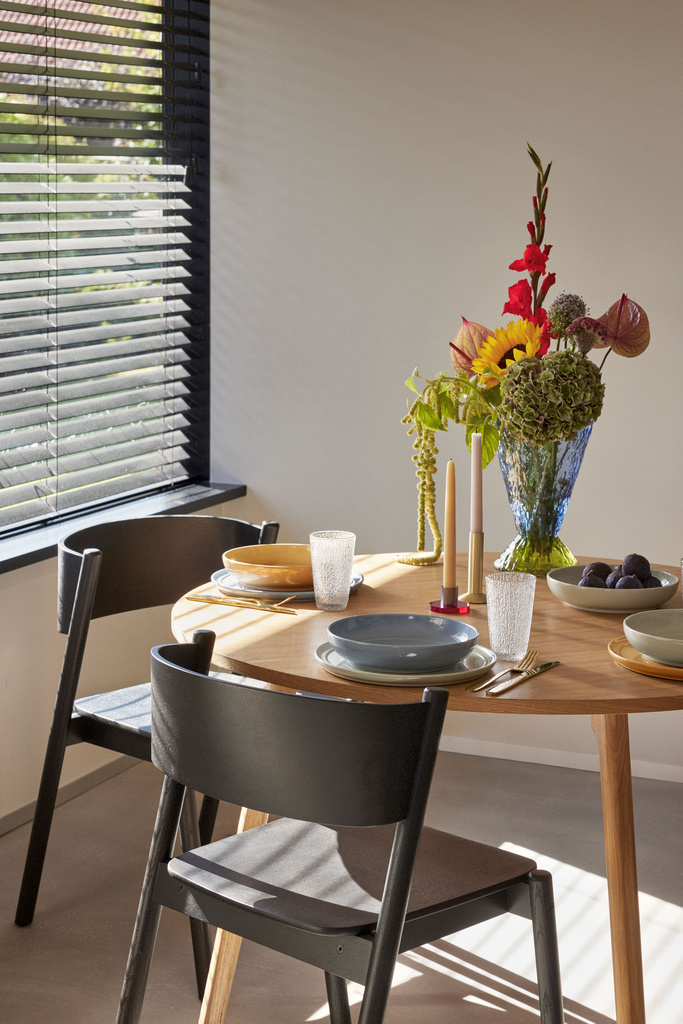 FSC®-certified dining chair in oak with black lacquer.