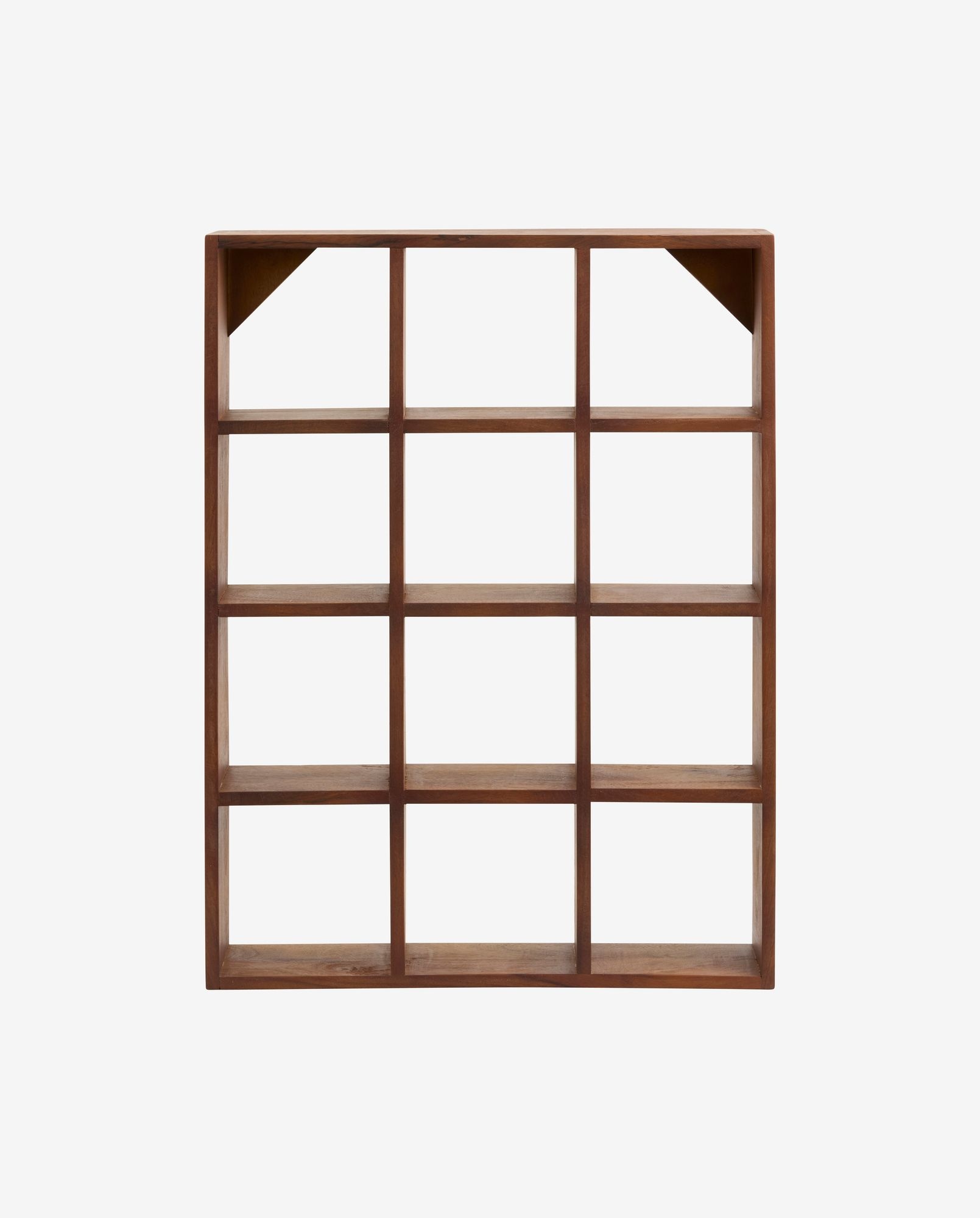 Create the perfect display for your favourite ceramic cups with the OSSA cup shelf in mango wood.#The square design features 12 evenly spaced compartments, offering both function and aesthetic appeal. The natural finish and lacquered surface highlight the wood’s beautiful grain, adding a calm and organic touch to your wall. OSSA works beautifully on its own or combined with other shelves for a more expressive wall setup.##Max weight: 9,5 kg. Screws included.