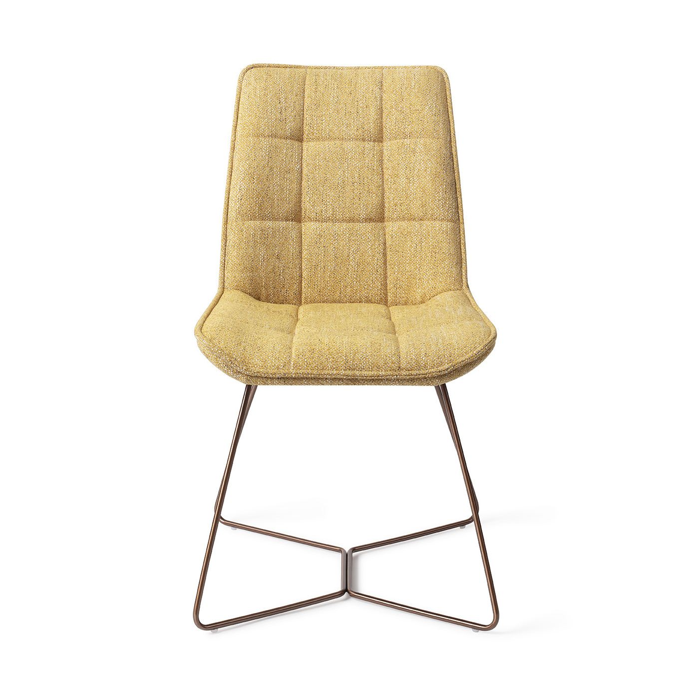 De zitting is bekleed met een hoogwaardig polyester en acryl met een kenmerkend 9-vaks patroon in zowel de rugleuning als het zitvlak. De stof is een melange van geeltonen die zowel als subtiel als gewaagd gezien kan worden. De Ota eetkamerstoel combineer je bijzonder goed in een modern en licht interieur.Â