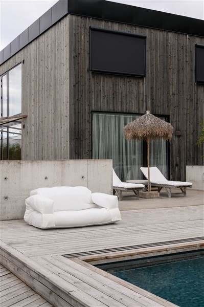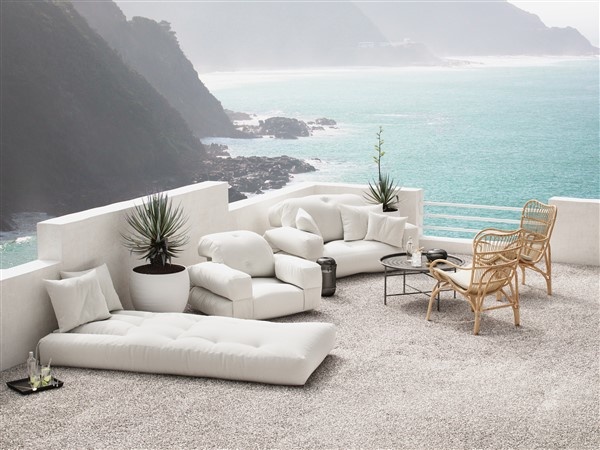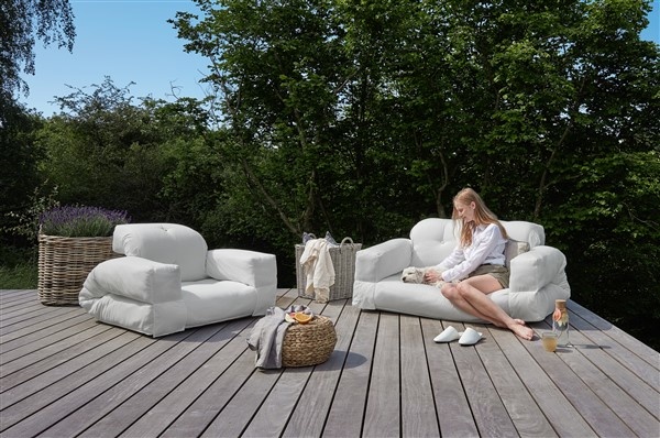 Chill. Unfold. Doze - Meet Hippo sofa in our new OUT™ design. Pleasant as always. Comfortable and relaxing like never before. And covered with a stain resistant and water-repellent dralon fabric that allows you to safely take Hippo sofa to your terrace or garden. Or even to the beach (though not for a swim). Outdoor sofa and outdoor sunbed in one. Lazing in the sun. Lounging in the shadow. Living . Every . Moment. Hippo OUT™ is available in two sizes and three colours: chair and two-seater sofa in white, grey or beige. Design by Anders Backe, Anne-Sofie Voss, Ida Sofie Lange, Lars Wigh and Troels Rask Pedersen for Karup Design.
