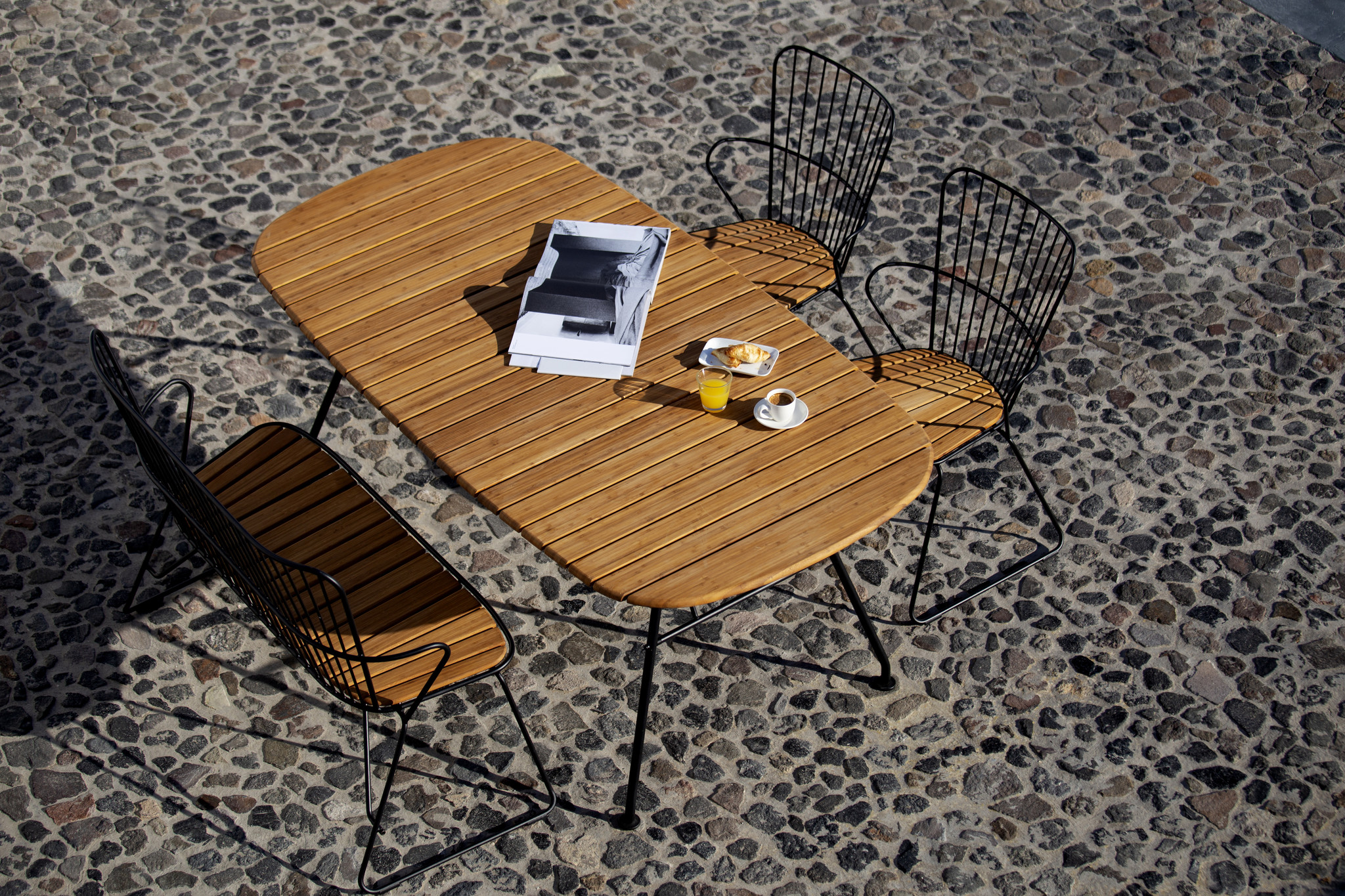 PAON is the French word for Peacock, and this bird worked as inspiration when designing the chairs in the PAON line - take a look at the back and you will notice. PAON is light Scandinavian in its design but with a touch of French Victorian romance. All PAON chairs are blessed with a seating comfort you would not expect from a metal chair! Designed by Henrik Pedersen. The PAON line consists of a Dining chair, Lounge chair, Rocking chair, a two seater Bench and a Bar chair. Made in powder coated steel with bamboo lamellas. PAON Dining chairs are stackable.