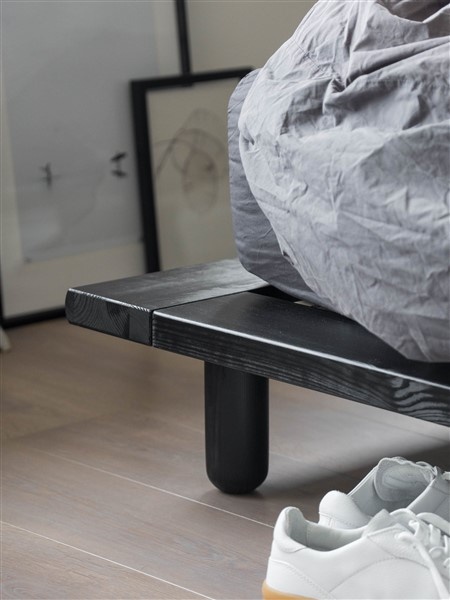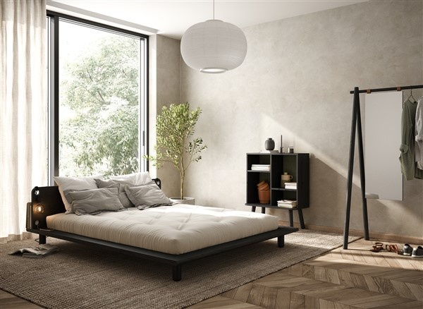 Peek is designed to serve two main purposes: To be a delightful bed and to provide more space for your belongings. Our Peek bed is crafted from solid FSC®, certified pine wood and features a beautiful and functional headboard. The frame is available in light wood or coated with black water-based lacquer. The broad frame allows you to easily store and charge your phone from your bedside and let your favorite books peek out from behind the headboard. Smart. Beautiful. Storage.