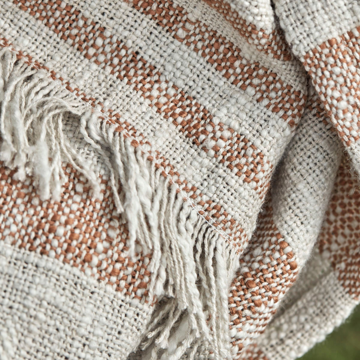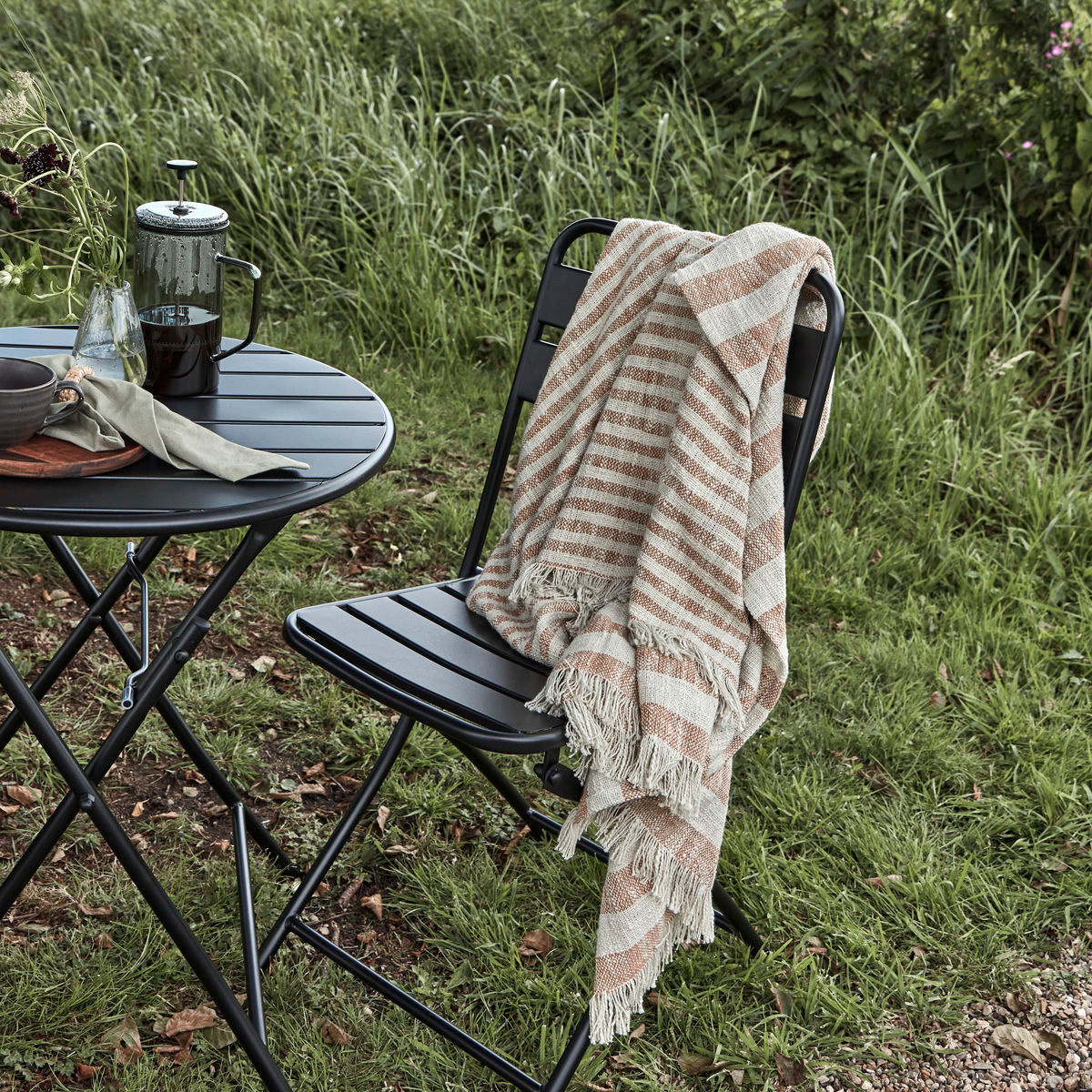 Your sofa, a cup of tea and this casual throw from House Doctor. The design in soft cotton features stripes that gradually get more narrow, fringes and neutral colours to go with any interior style. If you want a cohesive look for your seating arrangement, pair the throw with cushions in similar shades of brown and cosy up in comfortable style. Or simply take the throw with you outside to enjoy a coffee in the sun. Material: Cotton Care instructions: Do not wash, Do not bleach, Do not tumble dry, Do not iron, Do not dry clean