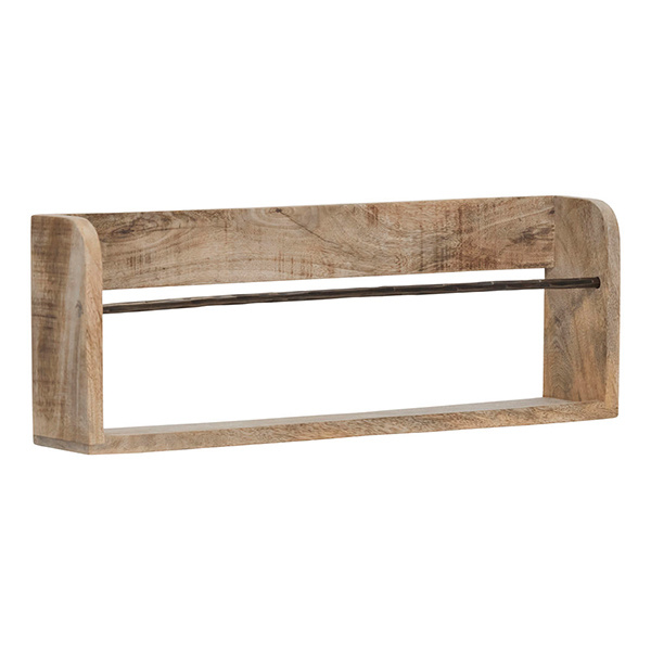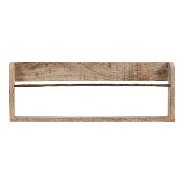 Geef je interieur een upgrade met deze elegante tijdschriftenhouder, gemaakt van natuurlijk mangohout en ijzer. De combinatie van licht hout en de rustieke ijzeren stang creëert een gezellige sfeer die perfect is voor elke kamer. Gebruik hem als tijdschriftenhouder of als extra plank in de keuken.