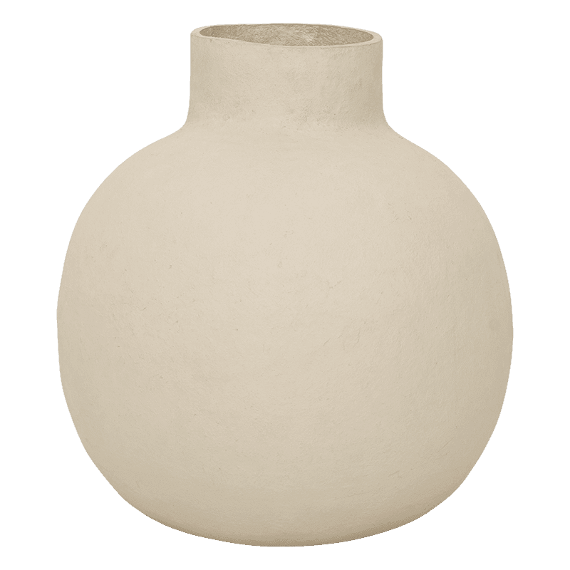 A revival is what Urban Nature Culture’s after – in circularity is where the Amsterdam brand makes it happen. Through pot Tuuli, the fabric waste of Indian factories receives a second life, and transforms into a modern, imperfectly shaped, decorative pot. Its skin is pulpy, matt and carries a high sense of tactility – combined with its bulging belly, asymmetric neck and warm, calming sand shade, makes for a great urban classic for your interior. Made of cotton maché, Tuuli displays dry or dried decorative items only. Material: Cotton Maché Characteristics of the product: - can vary in sizes/thickness, especially in the rim edges. - handmade, - each piece is unique - NOT water resistant"