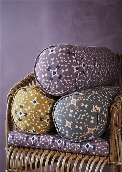 Madam Stoltz Madam Stoltz Printed bolster cushion Mustard, off white, dark blue Mustard, off white, dark blue