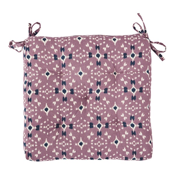 Madam Stoltz Printed cotton chair pad, Dusty lilac, off white, dark blue