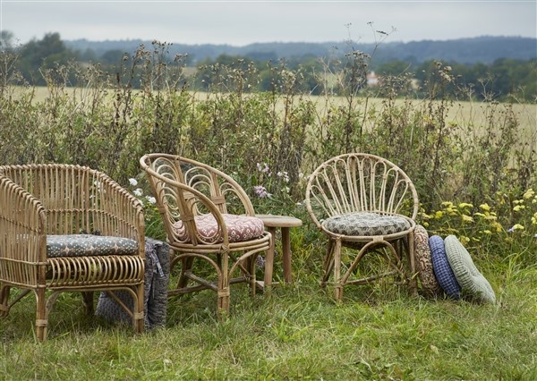 Madam Stoltz Printed cotton chair pad, Grey, ecru, coral
