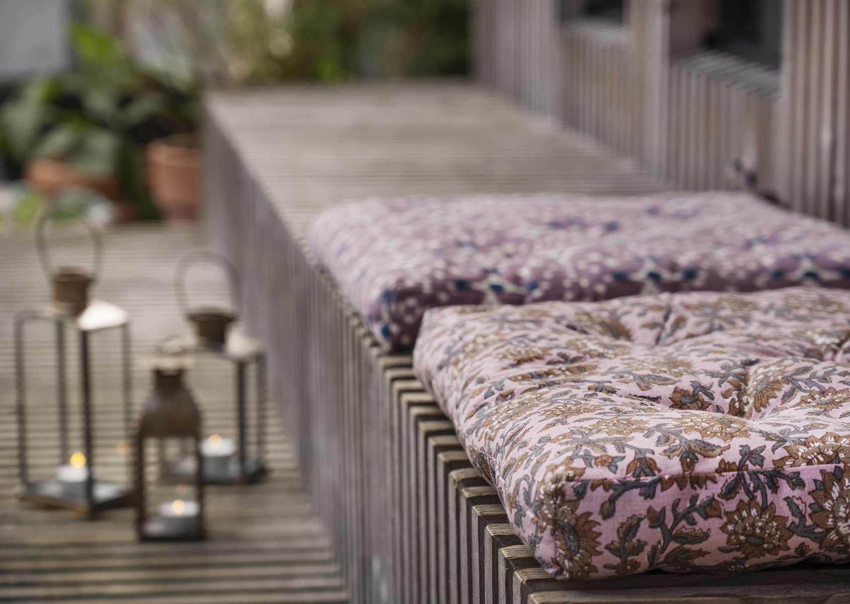 This printed cotton chair pad brings a calm touch of India into everyday life, with an all-over floral print in warm colours. A print that matches the cushion covers from the same collection. Easily personalise your space with various prints and colours in a vibrant design. Soften and decorate your seat, whether it’s at the dining table, at work or in your reading nook. The pink, nougat, grey palette feels warm yet understated, making it easy to mix with your existing pieces. Our printed cotton chair pad adds gentle support while giving a subtle crafted mood to any chair.