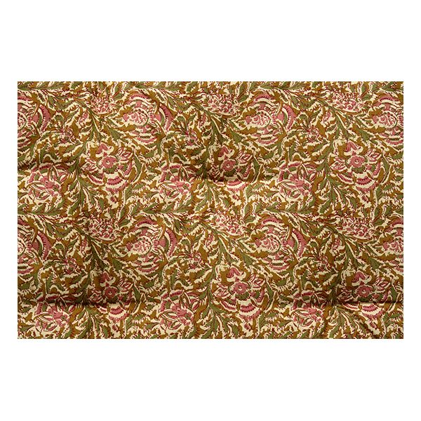 This printed cotton mattress adds cosy comfort and style with honey, rose, green and off white tones inspired by original indian block prints. Crafted from durable cotton with cotton filling and shredded cotton fabric remnants, it’s ideal for upholstering chairs, refreshing sofas, terraces or the ground, and pairs beautifully with matching cushion covers.