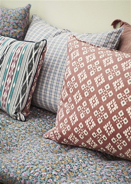 Madam Stoltz Printed cushion cover, Old rose, ecru, anthracite