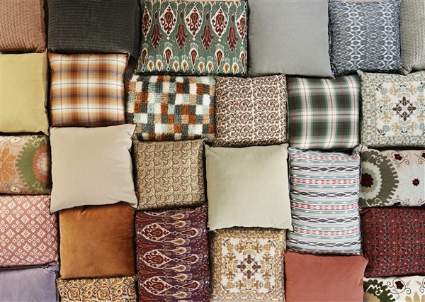 Madam Stoltz Printed cushion cover Sand, syrah, khaki