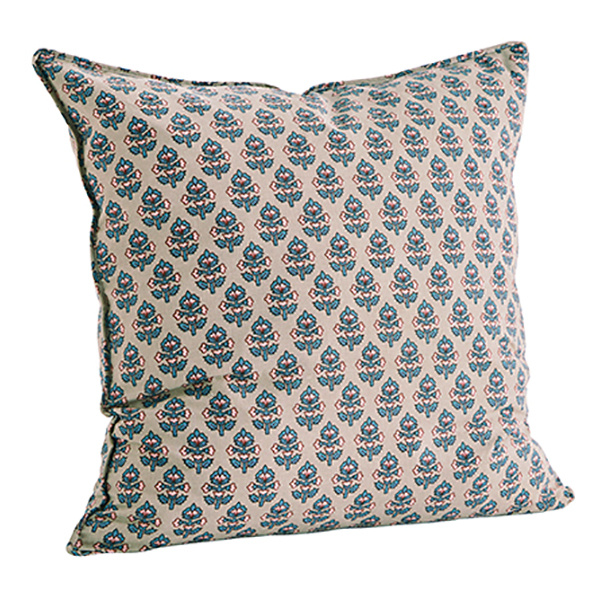 Madam Stoltz Printed cushion cover, Taupe, aqua, pink