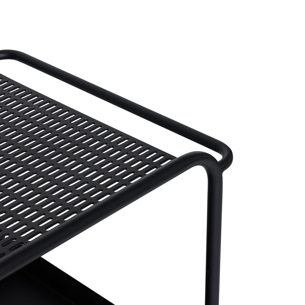 Discover the charm of 'The Classic Trolley,' your new favourite ally in decluttering and beautifying your space. Crafted from robust metal in an elegant black, this versatile wonder glides effortlessly into any corner of your home. Could it be your mini-bar or snack station? Or perhaps it serves as transportable book storage? Use it as kitchen or living room storage and revel in its ease of mobility. Truly, a must-have to keep everything you love close at hand and easy to move around.