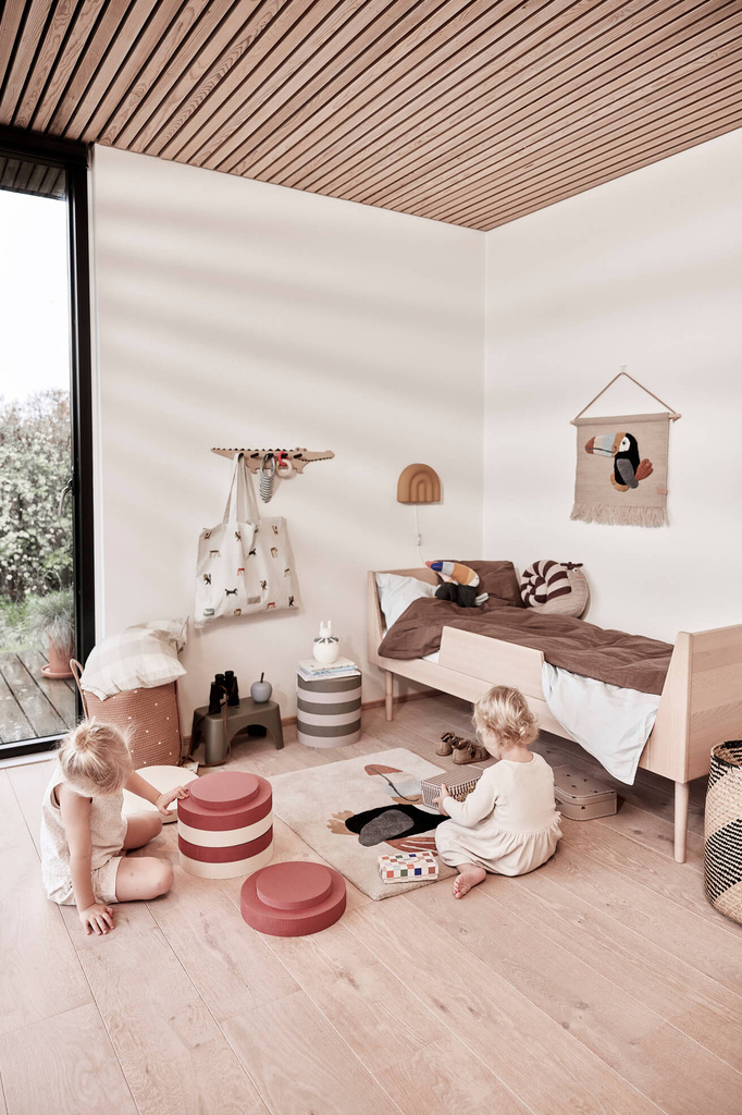 The Rabbit Step Stool is both functional and playful. Made from sustainable bamboo fiber, this stool can support a maximum weight of 100 kg. With a non-slip surface decorated with small rabbit heads, a feature of the OYOY Mini logo, it ensures safety with a touch of charm. The practical hole in the center facilitates easy movement for both children and adults. Versatile and stackable, this stool can be used in all rooms. Don't forget the friendly reminder: Don't jump! Rubber feet provide stability, making the Rabbit Step Stool is a charming and practical addition to your home. Available in more colours._x000D_
