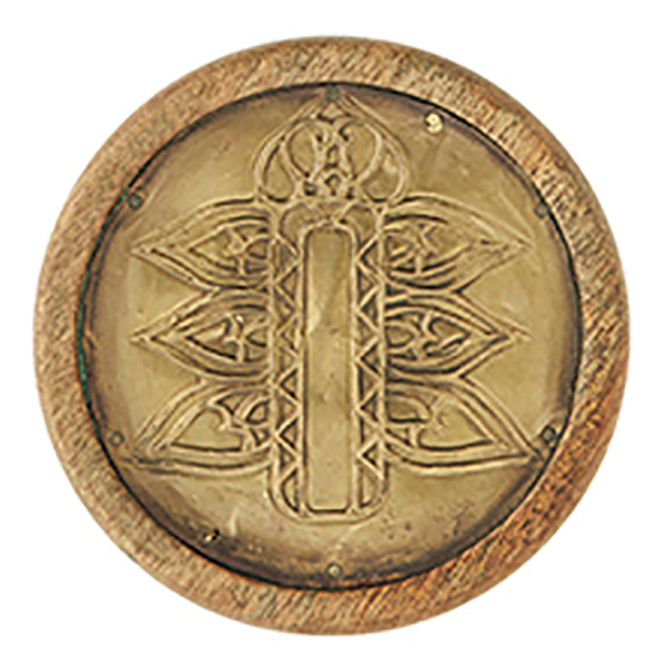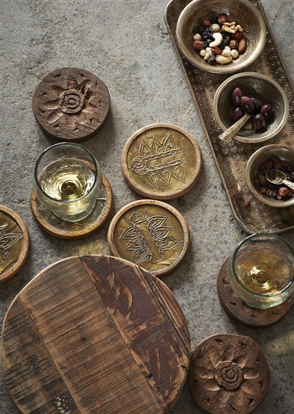 Brass sheet, recycled wood, Re-used items may vary in shape and colour