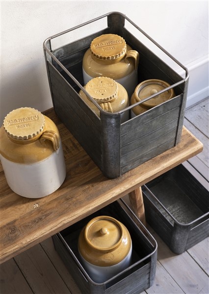 Madam Stoltz Re-used stoneware jar Light grey, mustard