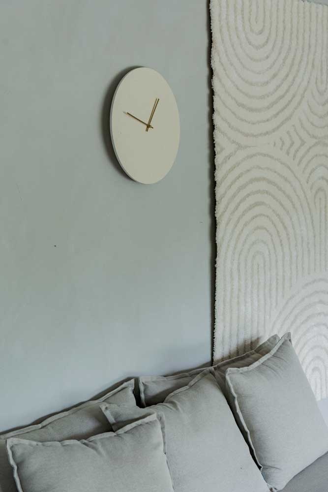 Et minimalistisk vægur med meget på hjerte. Det cremefarvede ur med det enkle udtryk er fremstillet af genanvendte hospitalsartikler, og det yderste lag består af rester fra Kvadrats produktion af møbelstof.Tilfør stoflighed til hjemmet med den bløde, cremefarvede overflade, der lyser op på væggen.